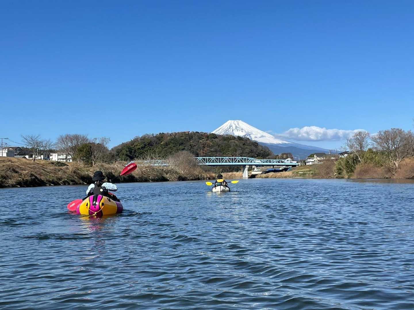 狩野川は今回で3回目。初めて来たのは2023年4月に参加した初心者向けのツアーで、スタート地点がここでした。そして23年11月にもツアーで来ていて、その時はここがゴールでした。川辺での準備はしやすいですが、川まで降りるのが急な坂で滑りやすかったので注意。